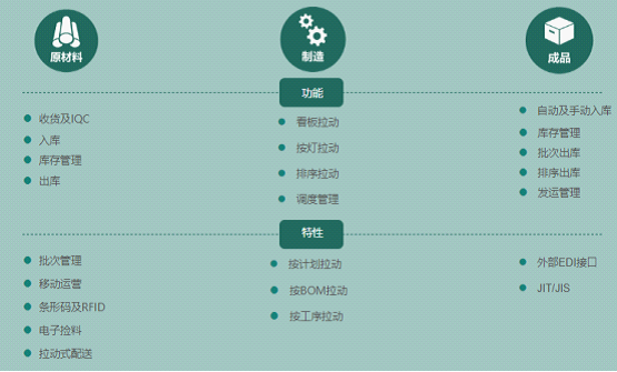 灵活多样的物料拉动管理,支持排序、备料、手工拉动、Andon等多种配送方式 ;
